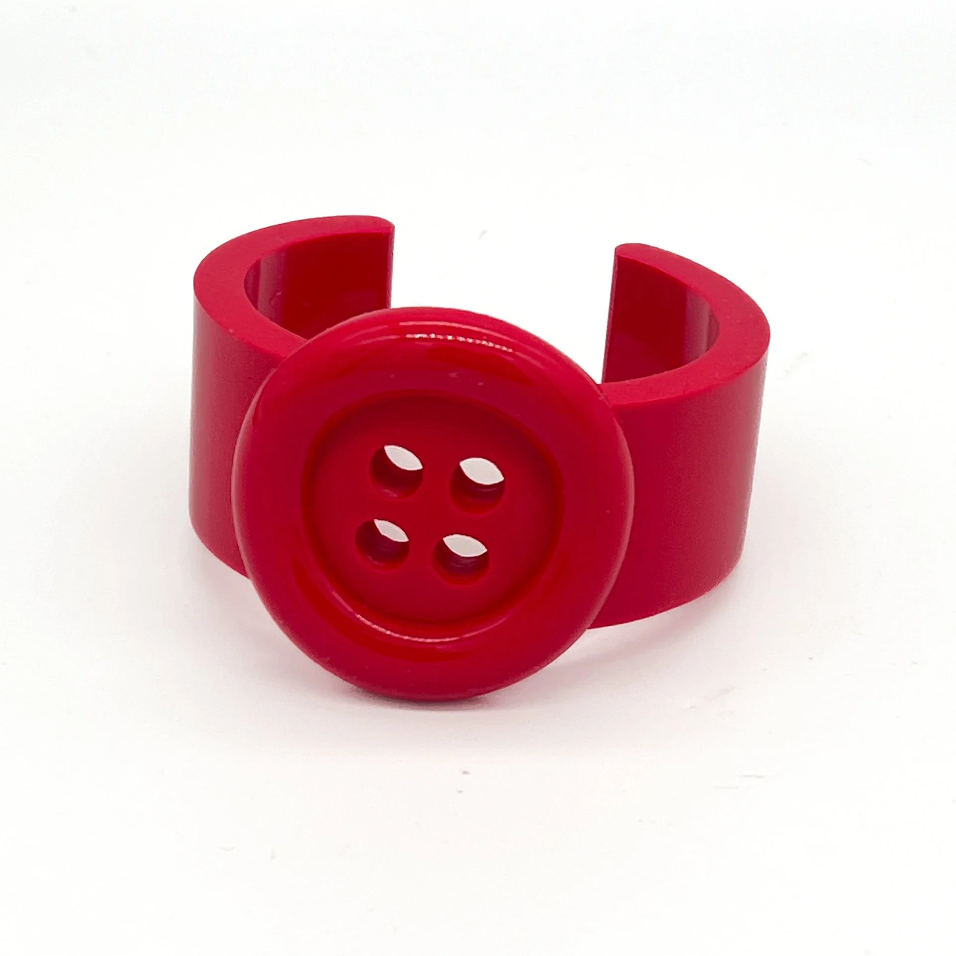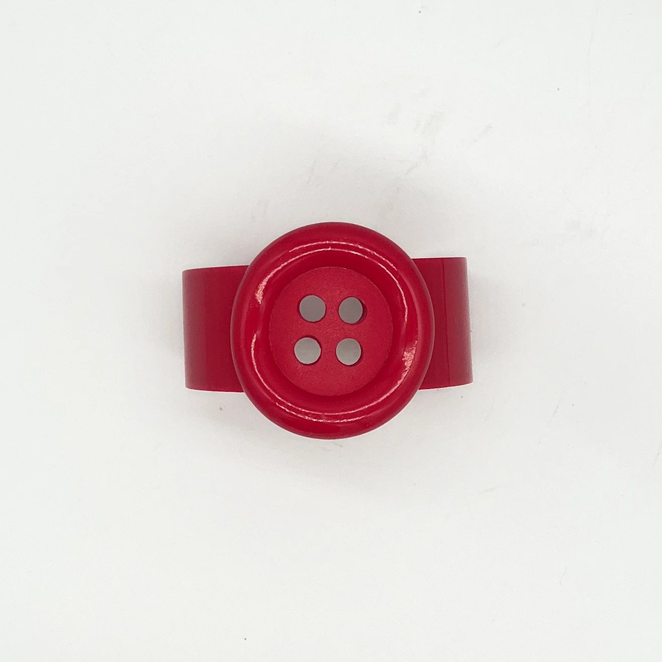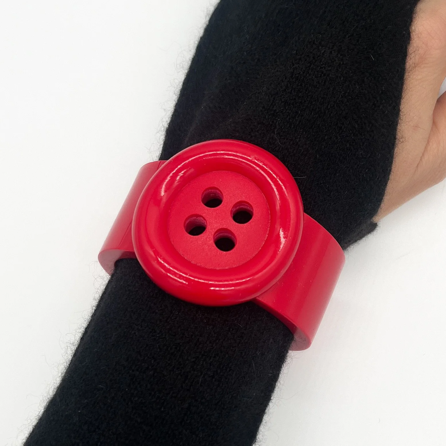 Resin bracelet adorned with XL button in red.