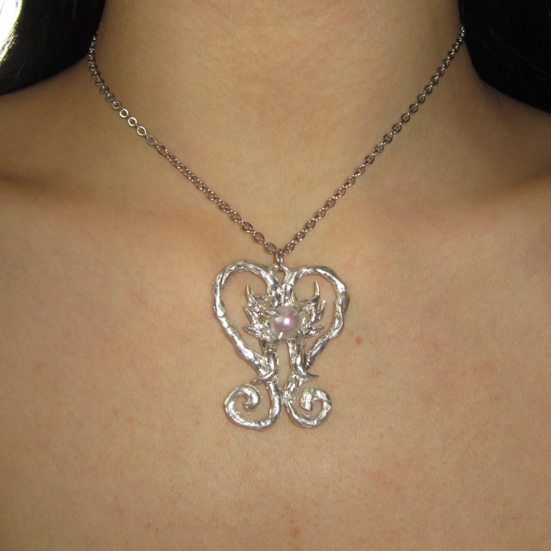 .925 Sterling silver necklace adorned with freshwater pearls.