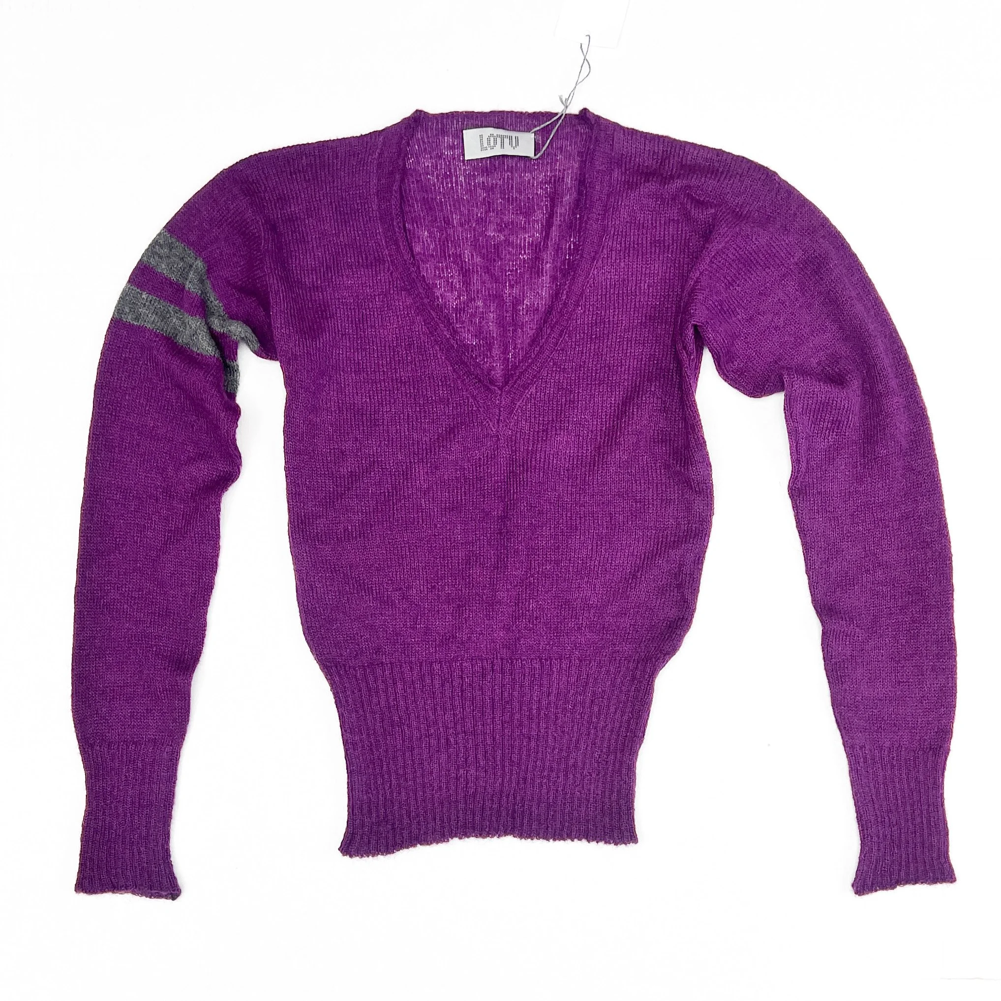 Hand knit deep v-neck sweater.