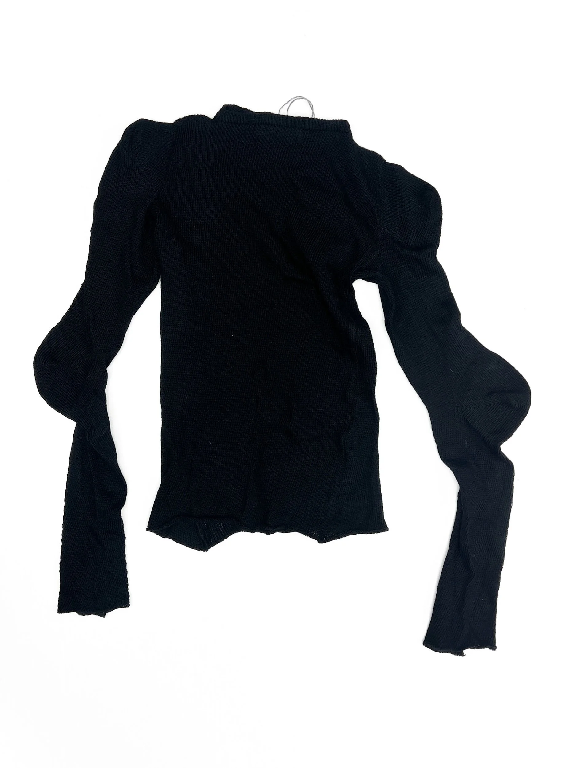 Hand knit sweater with exaggerated shoulder and elbow joints.