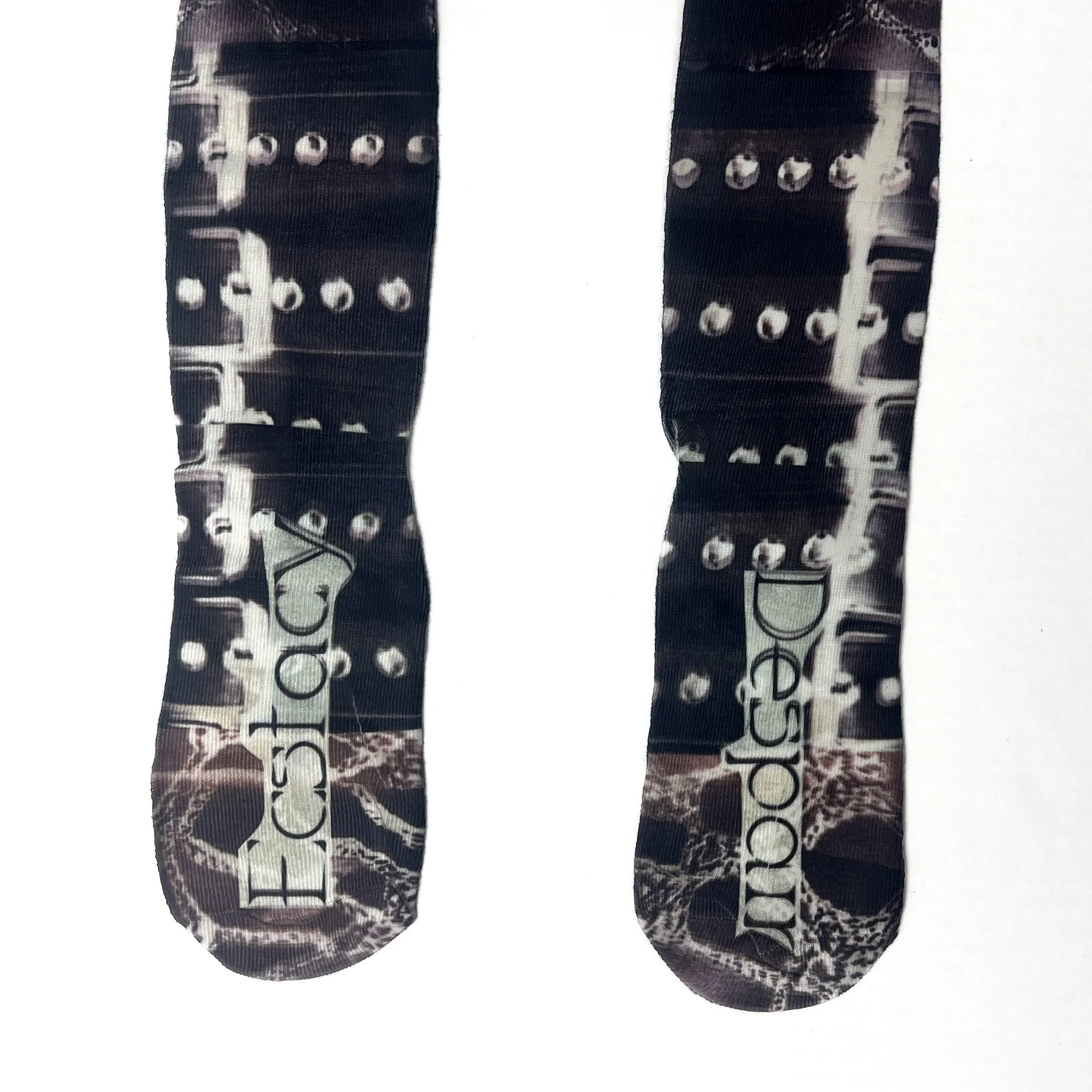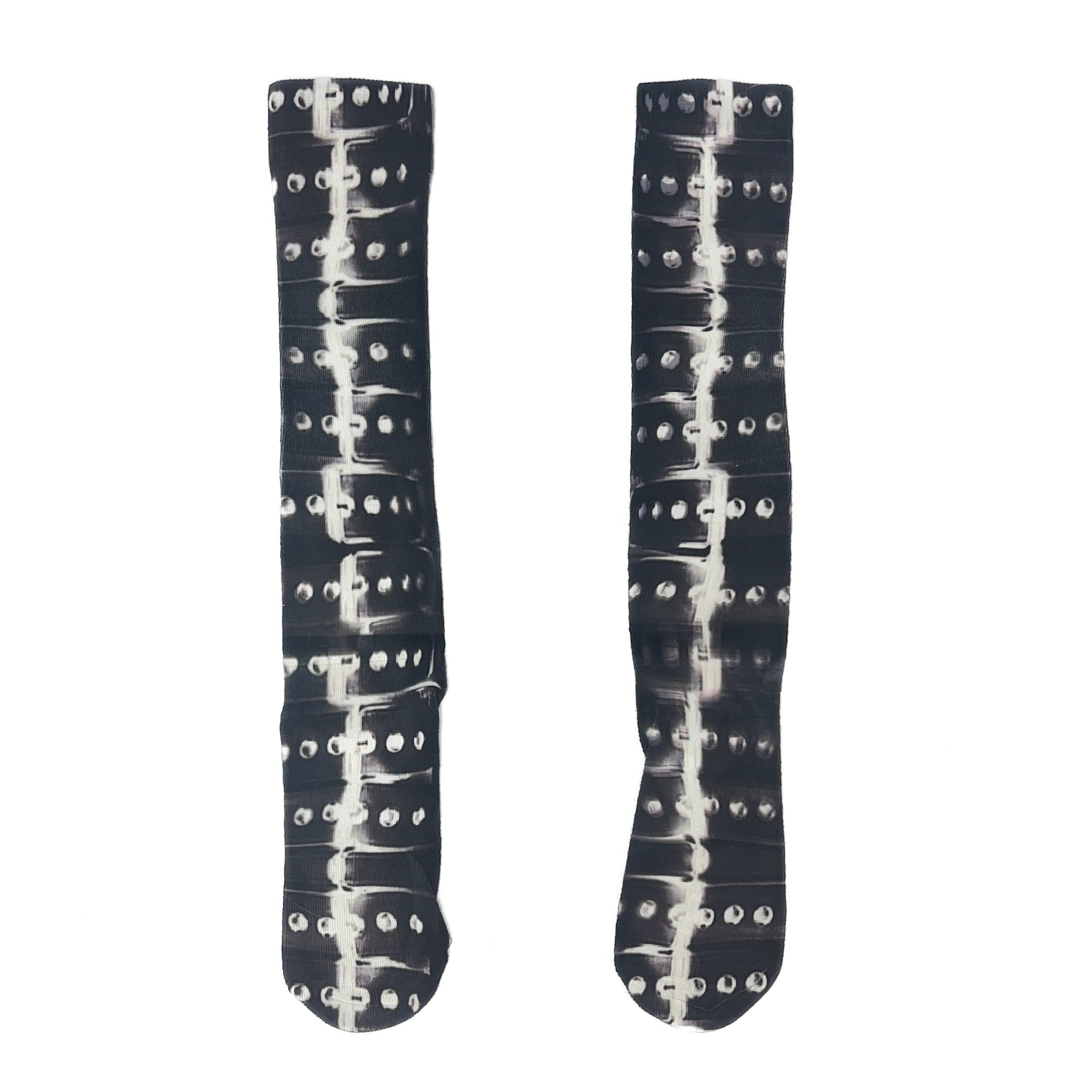 Poly blend socks with all over sublimation print. Each pair is uniquely printed.